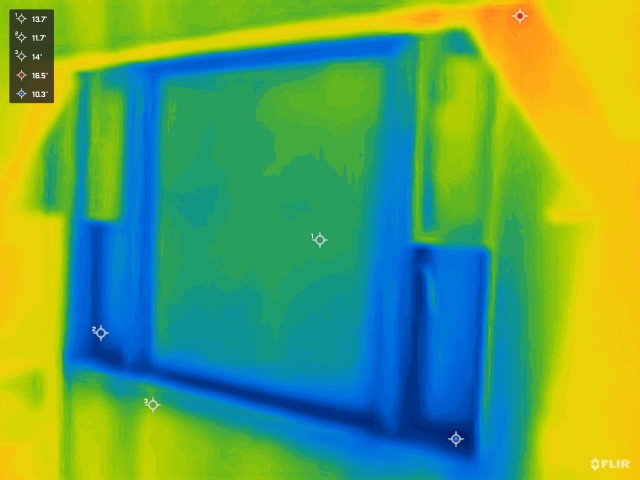 内窓施工前の窓のサーモ画像です 壁面は16.5度 ガラス面は13.7度