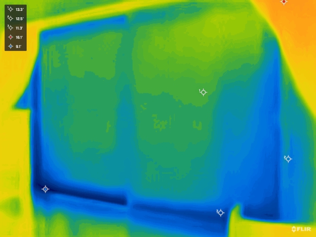 外気温7.9度(前日との気温差マイナス3.3度)の時のサーモ画像です