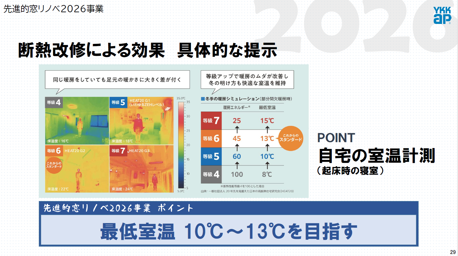 いない中、高性能内窓の普及で真冬の無暖房時の最低室温を10度~13度にするという