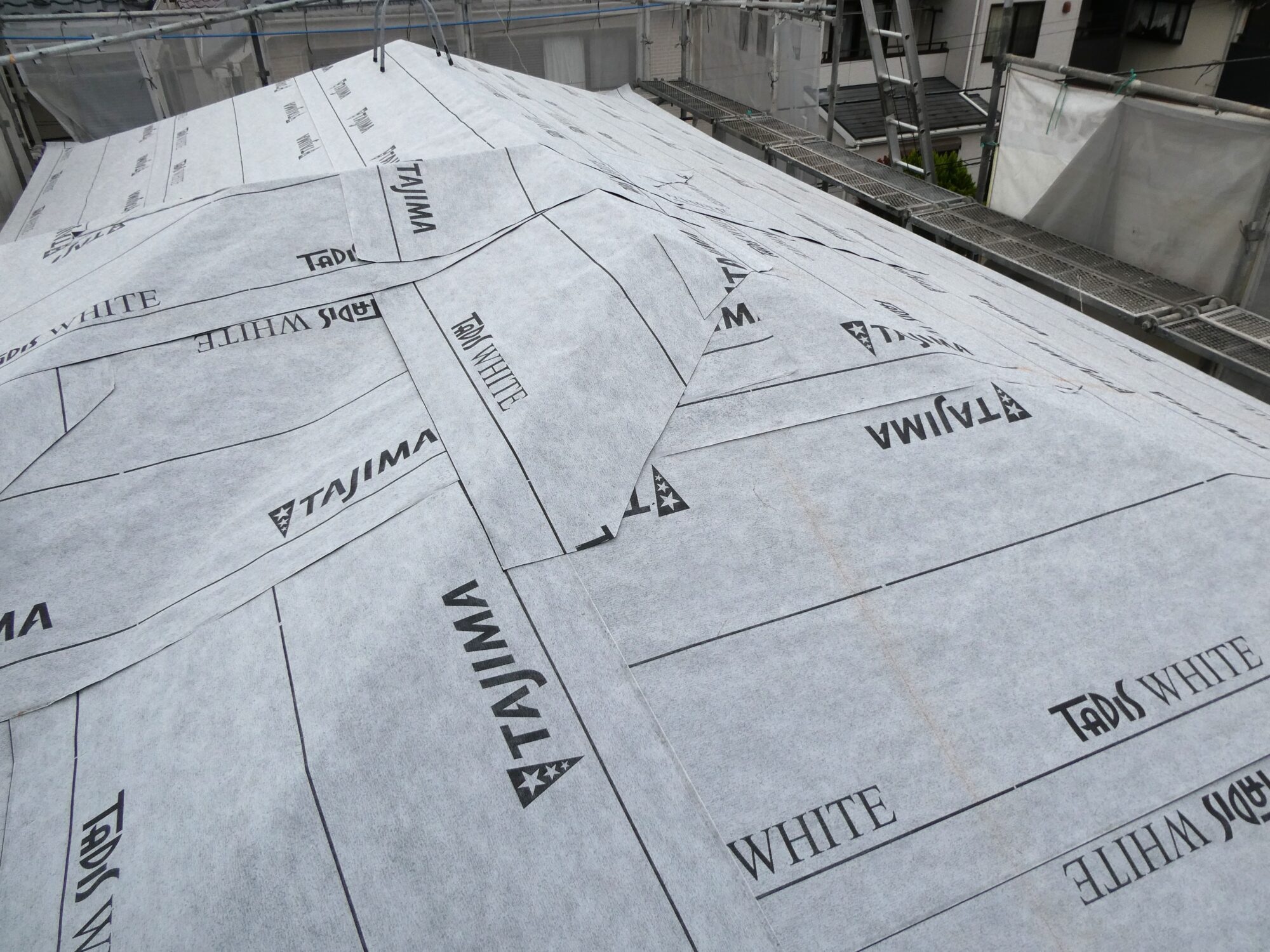 高耐久のアスファルトルーフィングを全面に貼ります。