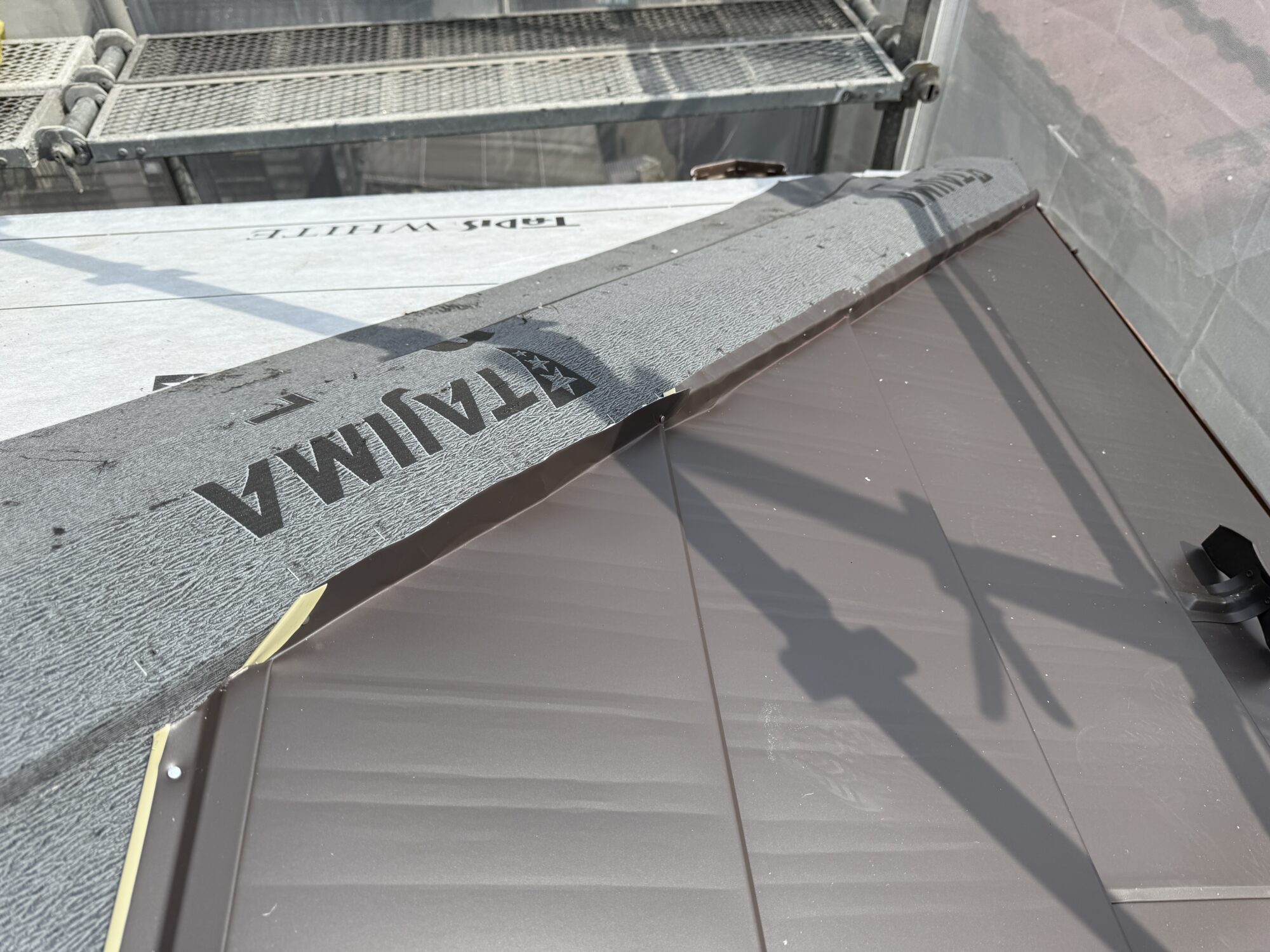 隠れてしまうこのゴムアスルーフィングですが、長く屋根を持たせる為には大事な部材です。